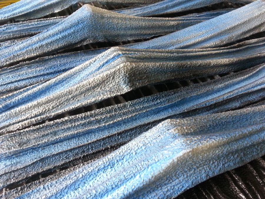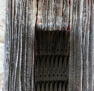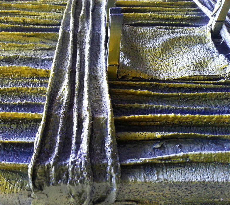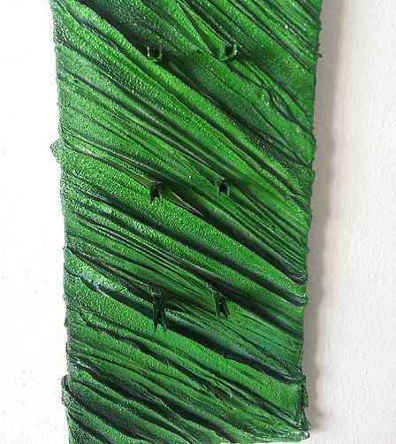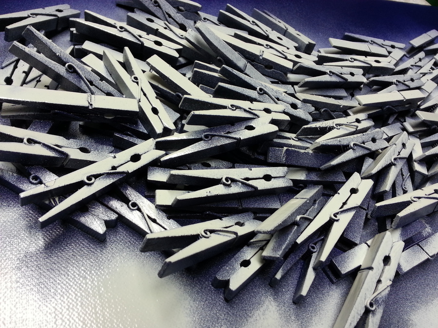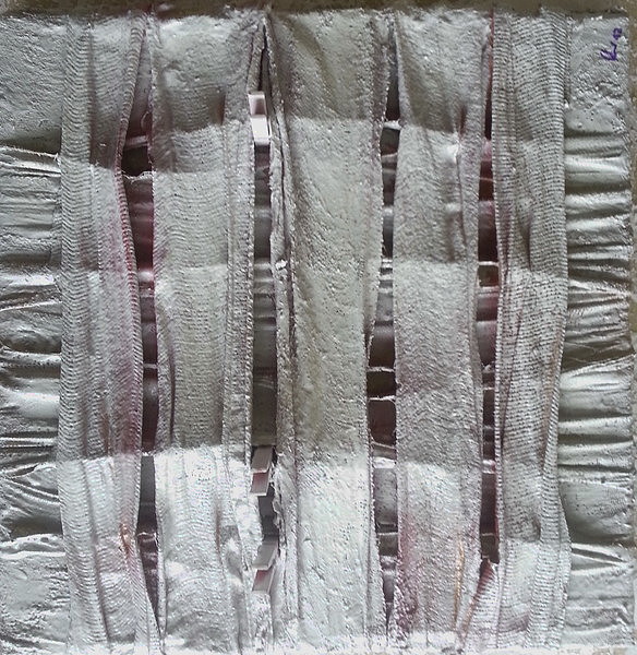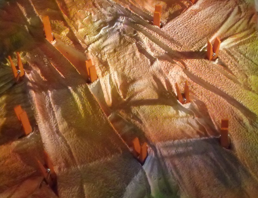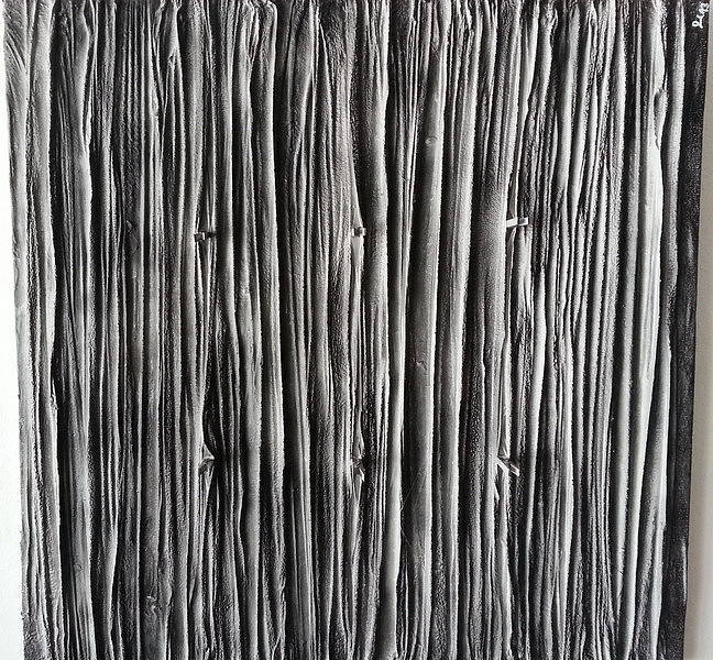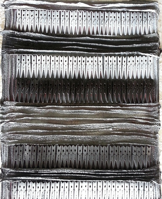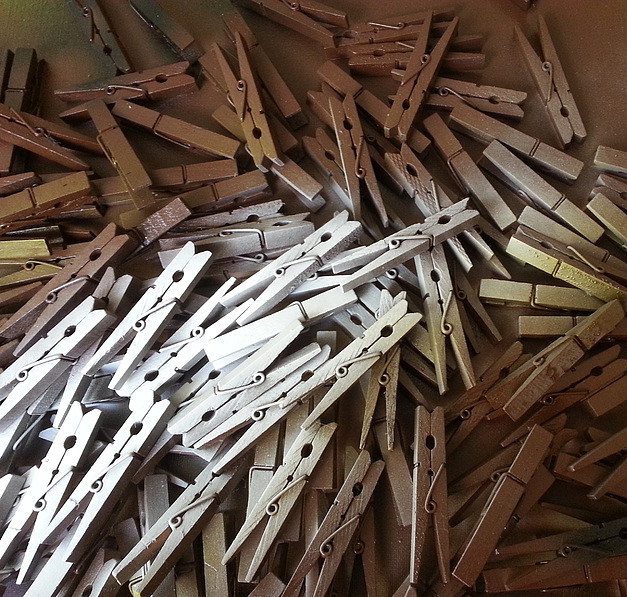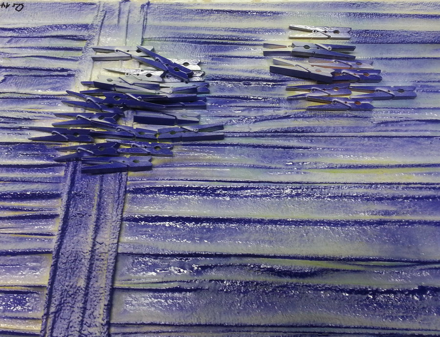 Auf einem Keilrahmen wurden Holzklammern befestigt und dann mit Gipsbinden umwickelt. Aufgrund der Anordnung der Klammern gab der Künstler dem Objekt den Namen
