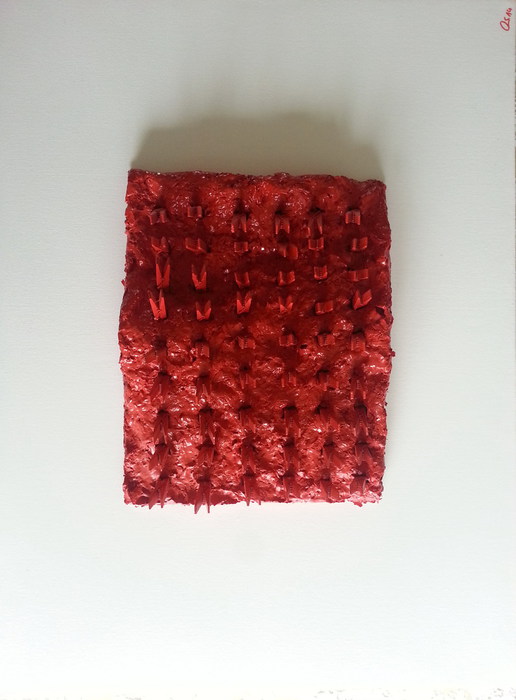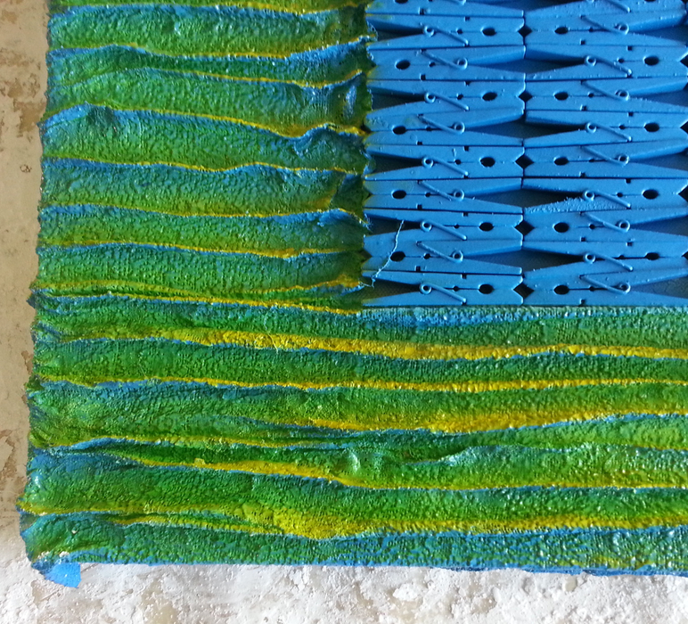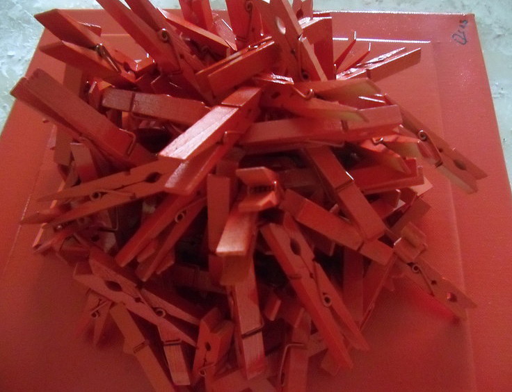 Dies ist eine der letzten Klammerkunst-Werke von Dieter List. Es hat das Format 90x90 cm.